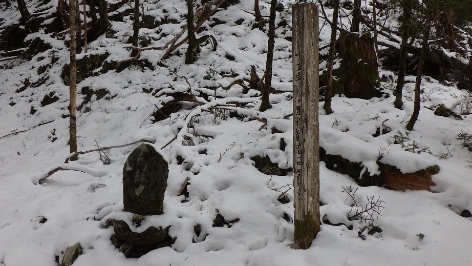 股ノ沢への分岐のすぐ下に四里観音があった。 四里観音避難小屋からは大分離れたところだ。 |