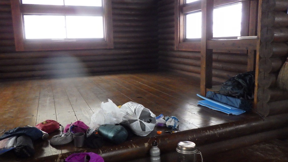 14:30 四里観音避難小屋に到着した。 十文字小屋からのコースタイムは1時間くらいだが 倍くらいかかった。 |