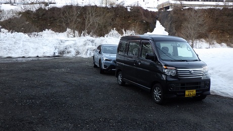 | 2023/3/20 朝5時に渋川のルートインホテルを出発し、コンビニで昼食を買った。 土樽駅の先の除雪された道を進むと安全登山広場の手前に車止めが置かれていて、そこに駐車スペースがあった。 6:15頃到着。1台先客の車が止まっていた。 6:30出発 |