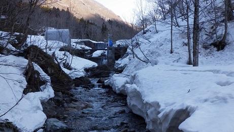 武能岳西尾根の末端近くにはコンクリートの橋がかかっている。 この橋は前回来た時も確認したが、忘れていた。 スノーブリッジを渡ったというレポートもみたが、 おそらくこの橋の上に雪が積もっていたのだと思う。 |