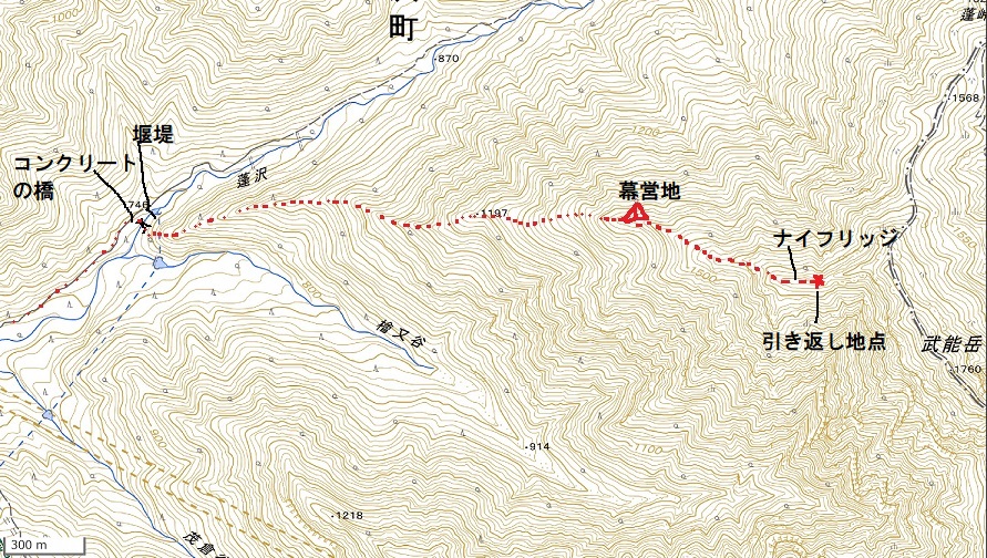 9時前に幕営地にもどり、9時過ぎに下山を開始した。 尾根末端を降りるところが一番難渋した。 11時頃尾根をおり、 12時過ぎに車に戻った。 もう一度挑戦するチャンスがあるだろうか。 |