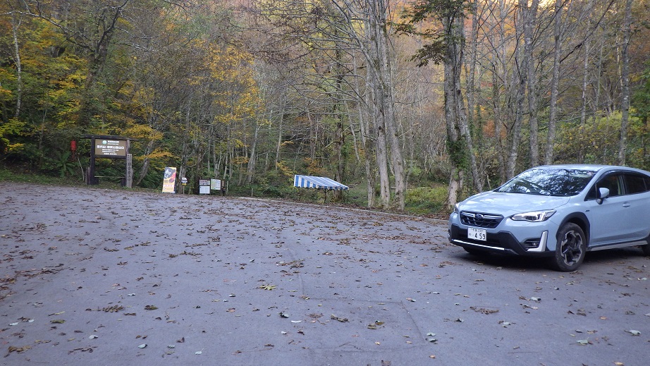 5時半頃宿を出発。舘岩で県道に入るが、登山口寄りの10kmは未舗装だ。どこかの記事でスペアタイヤを持っていくとよいと書かれていたが、それほどではなかった。