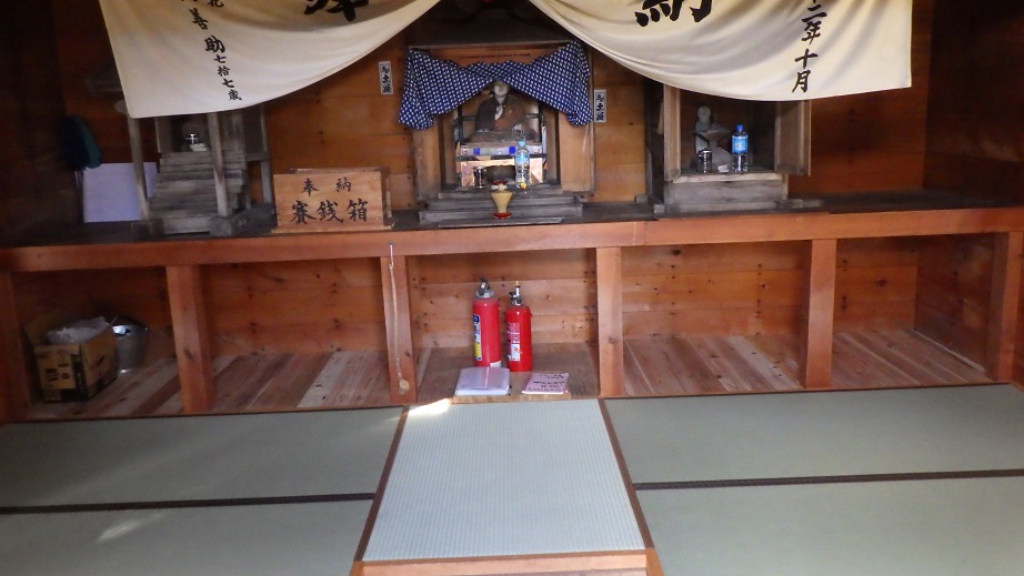 中には祭壇と賽銭箱があり、畳が8枚敷いてあった。 |