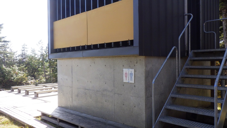 トイレは立派な建物で、排泄物が浄化される仕組みになっているようだ。 ここもチップ制になっていた。 トイレ横にはベンチが8台あるデッキになっていた。 ここで休憩し、持ってきたおにぎりをおいしく食べた。 ここまで、誰にも会っていない。 8:50発 |