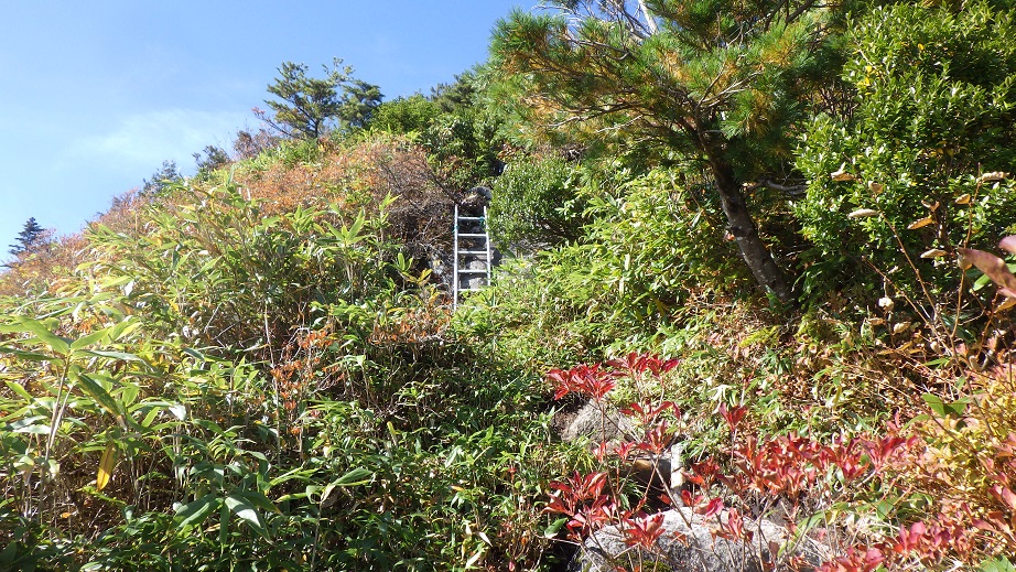 帝釈山山頂付近には梯子がかかっているところが2か所あった。 |