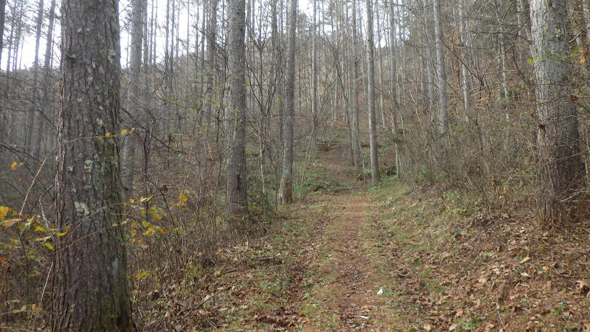 標高差で100mくらいは車でも通れるような幅広い道だった。 |