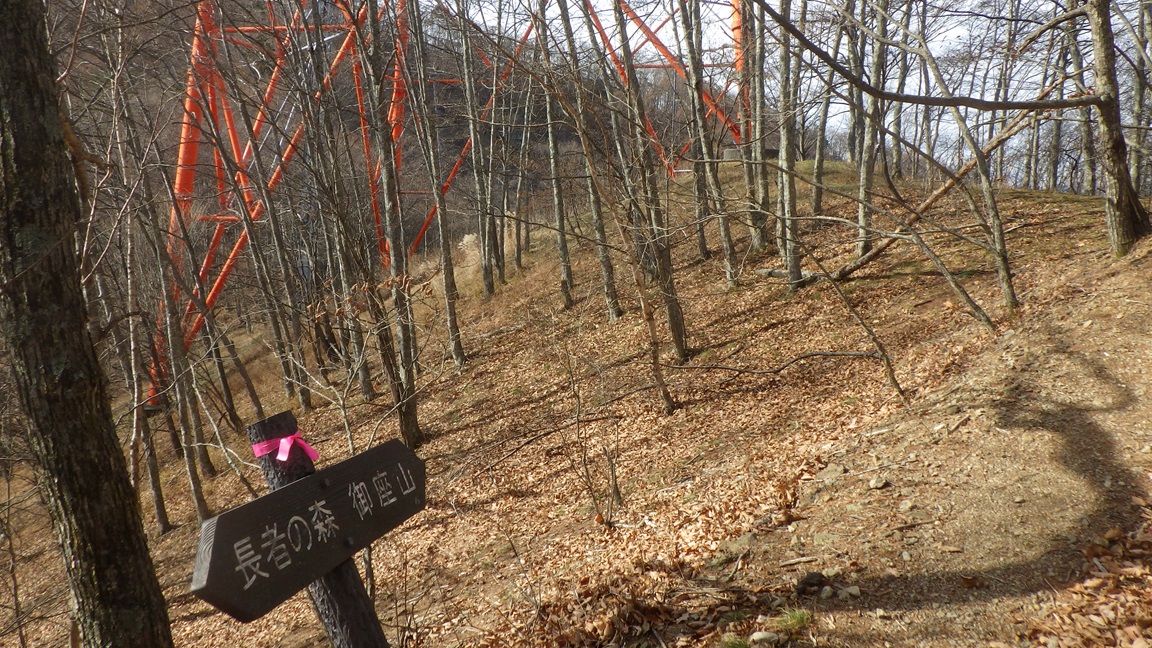 御座山には登山口が3つあるが、長者の森というところが一番駐車場がひろく、 行政のほうではここを一番に推薦しているので、長者の森からのルートを選んだ。 きれいなトイレがあるらしいが、この時期は、水道が凍結する恐れがあるということで 閉鎖されていた。 駐車場には先客はなく、付近に人気はなかった。 ストックとピッケルとチェーンスパイクを持った。 水は2.5L 9:00頃出発した。 |