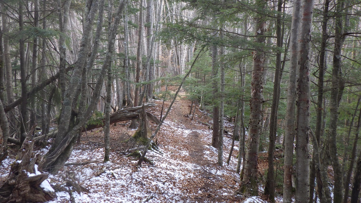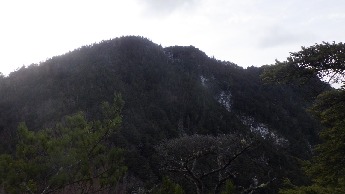 前衛峰の手前のコル。 昨日あった雪は消えていた。 |