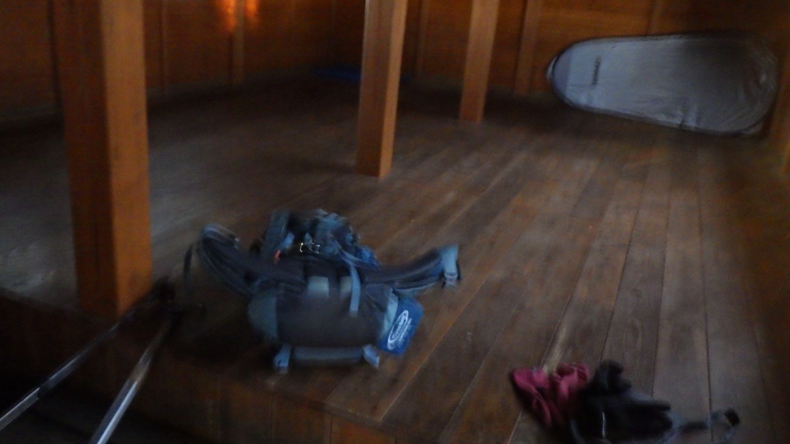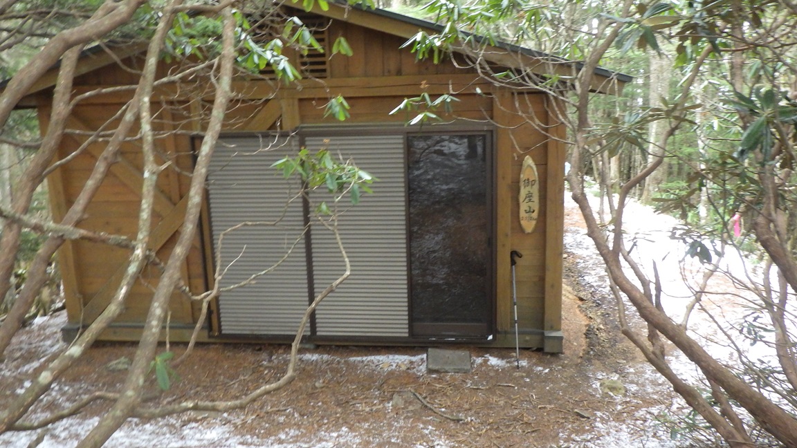 コルから160mくらい登って小屋があった。 評判どおりきれいだ。水場やトイレはない。 |