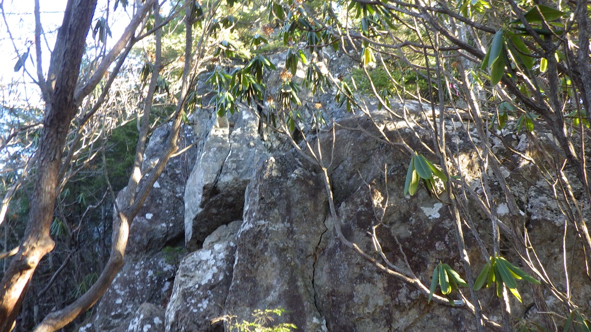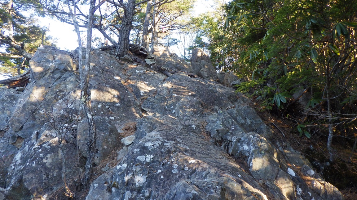 | 前衛峰への登り返しで岩場がある。前日降りてくるときは、少し足元が危なく感じたが、登るときは木の根が役に立った。 | |