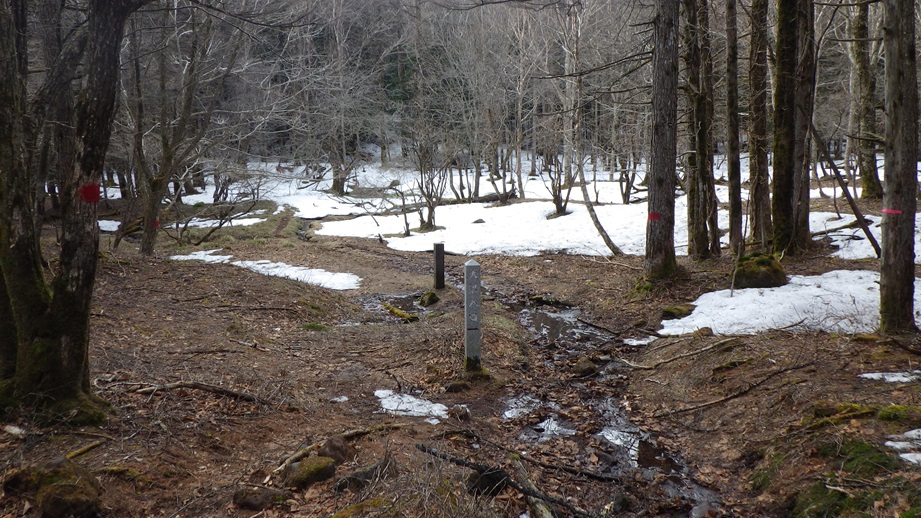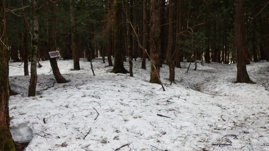 この場所で鶏頂山への道と釈迦が岳への道が 分岐しているが、 分岐部を見落として釈迦が岳とのコルへ向かう方へ行ってしまった。 こちらでも余り遠回りではない。 |