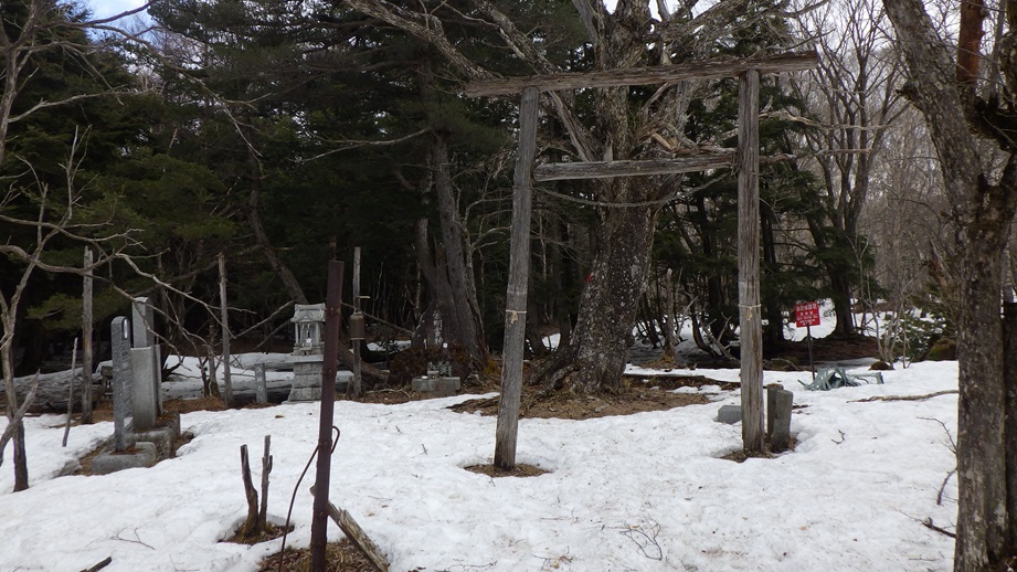 登山口には鳥居があり、 古い電子レンジを登山届入れにしていた。 登山口は1230m。 |