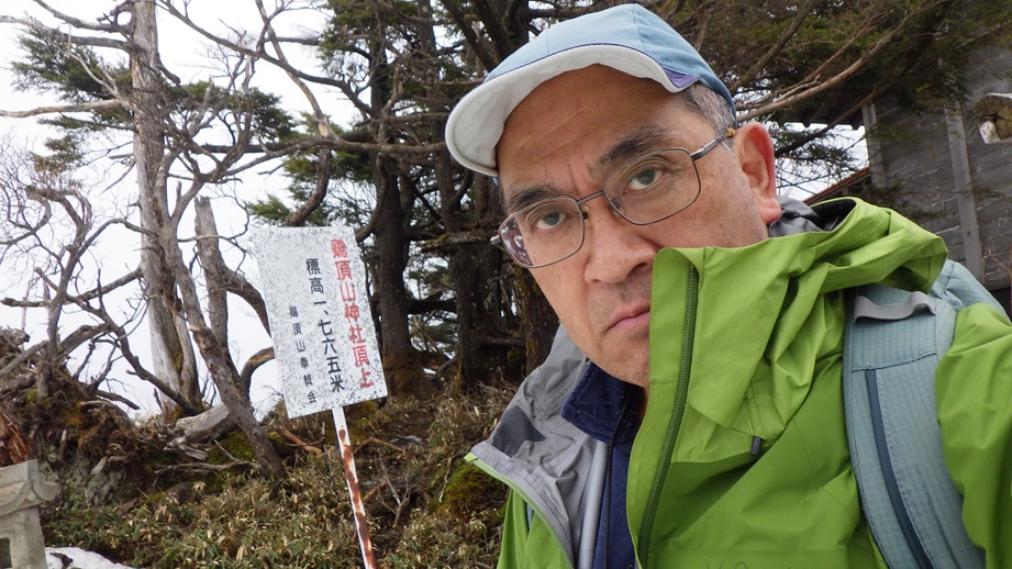 釈迦が岳の頂上にはガスがかかっていた。 左足のつま先が痛かったので、鶏頂山だけで 降りることにした。 |