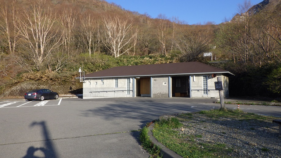 駐車場にある綺麗な建物は 左側がトイレで、右側が休憩所だ。 右側の休憩所の中を通って登山口へ向かう。 5:50出発。 |