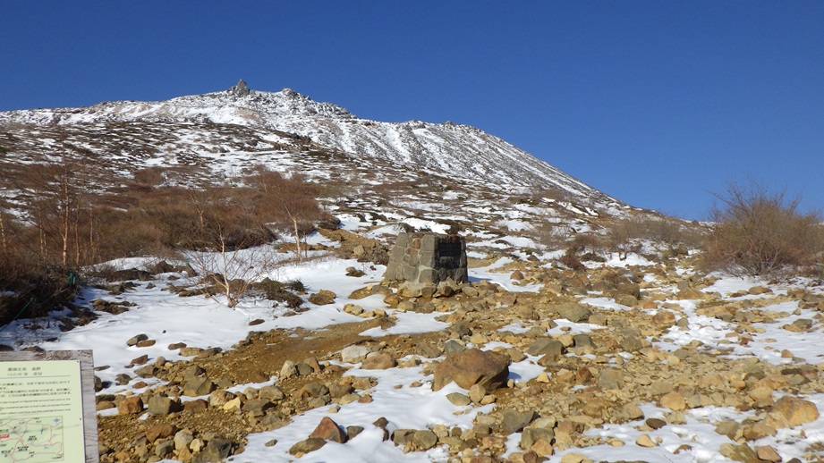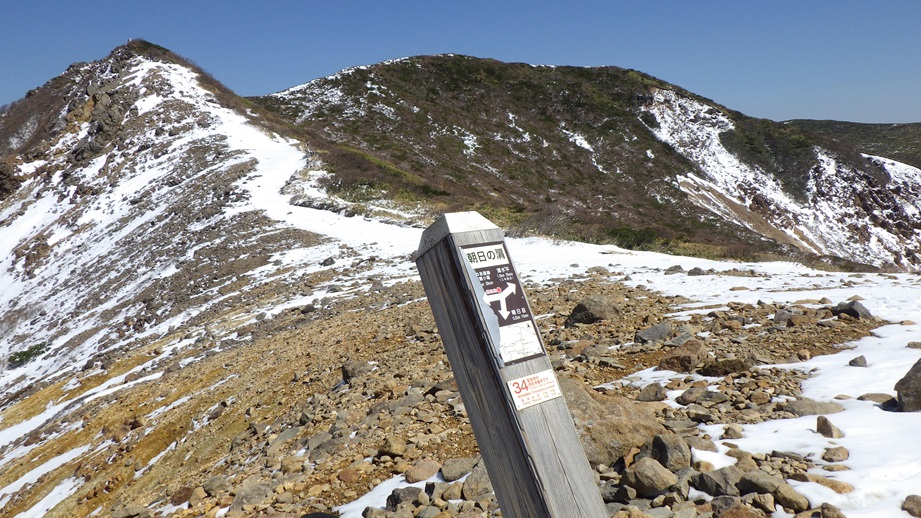 「朝日の肩」の標柱 三本槍方面 |