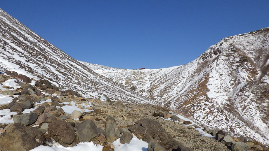 峰の茶屋 避難小屋が見える |