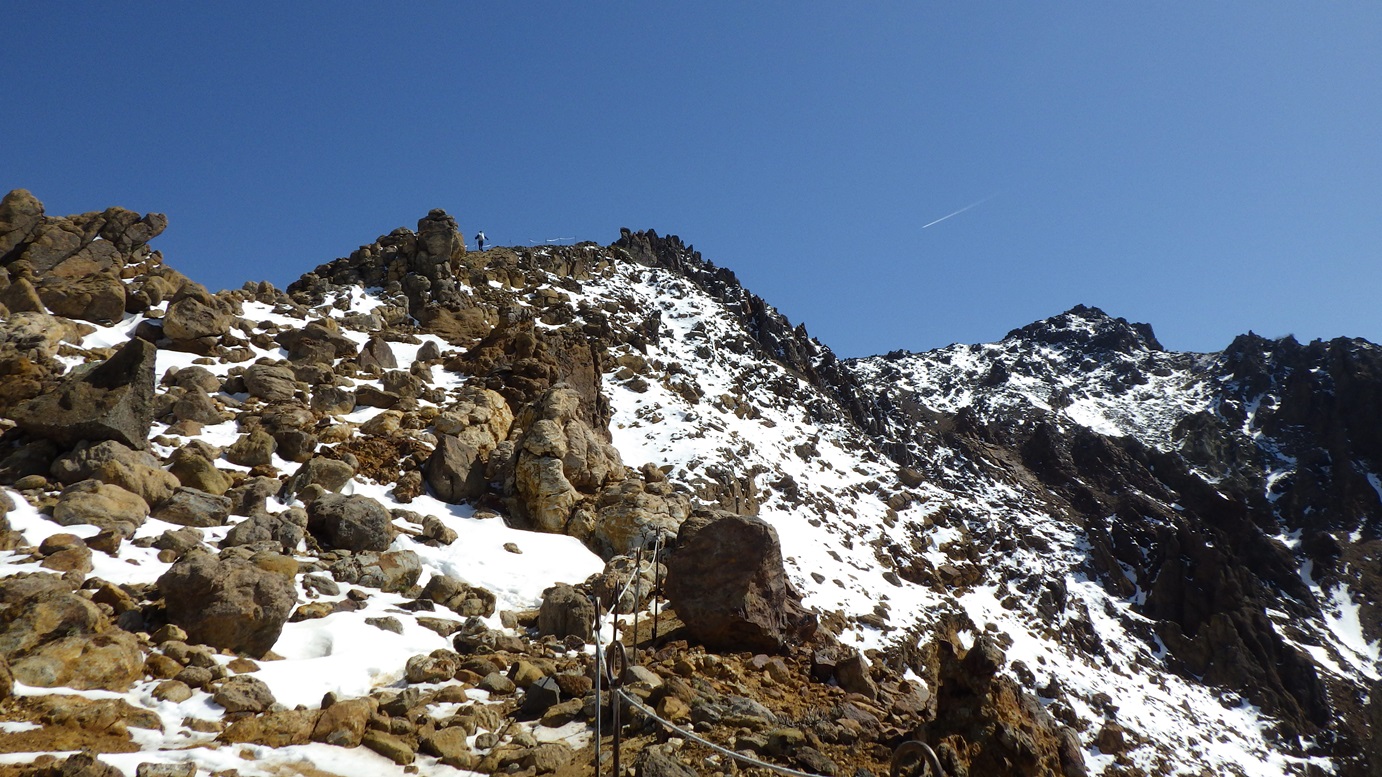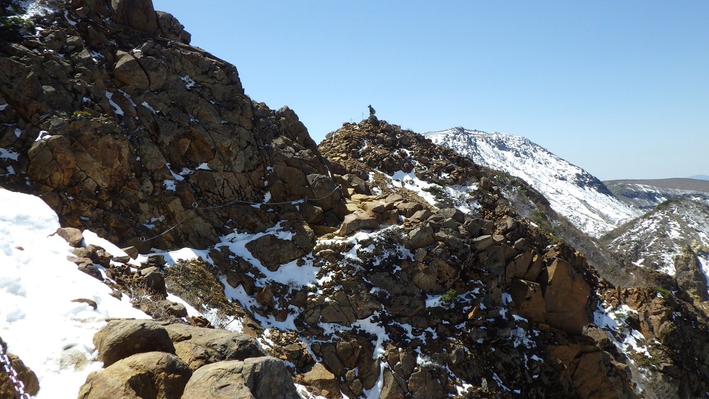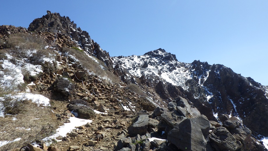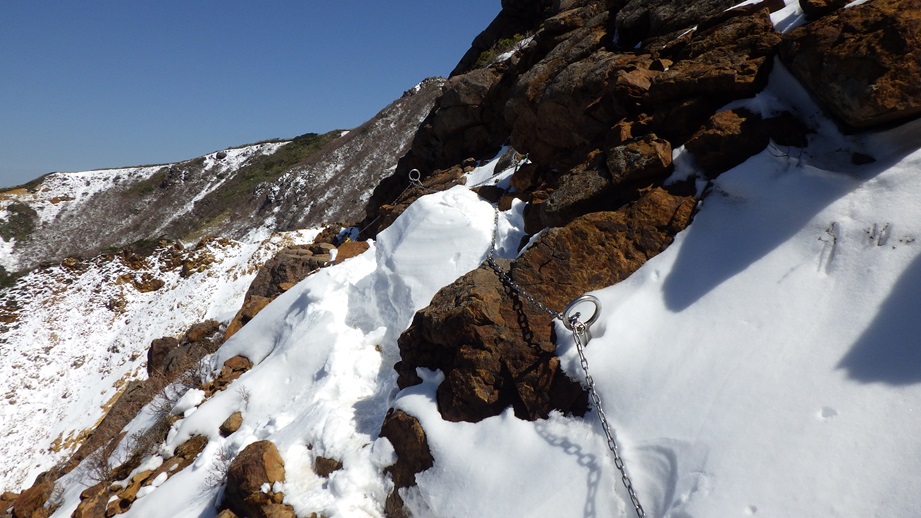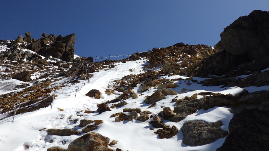 朝日岳の肩までは鎖場が多い |