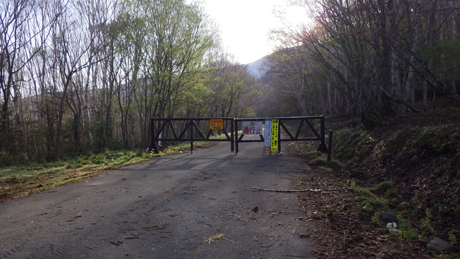 ゲートの近くに 車を置いて登山口まで歩くことになる。ゲートは5月末に開くらしい。ゲートから登山口までは歩いて10分くらいである。