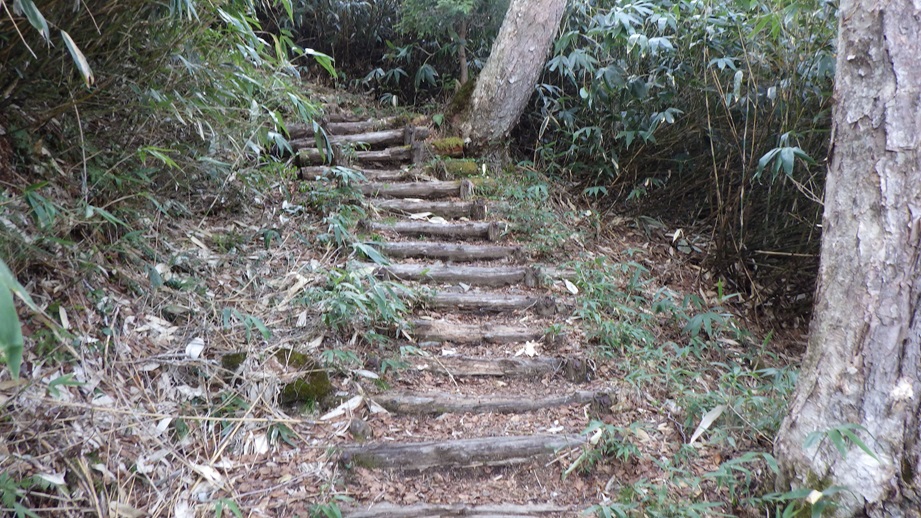 岩菅山までの登りは写真で見るとのどかな感じだが 220mほどの急登だった。 |