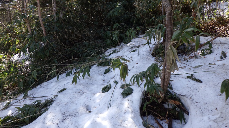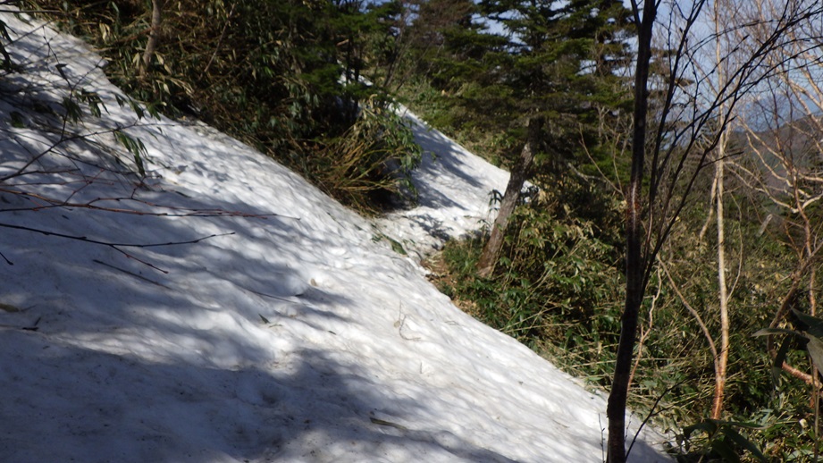 | 1900mから2050mくらいの間は稜線の北側を進むかんじで、残雪の斜面をトラバースするところが多かった。 | |