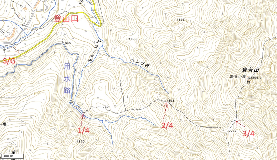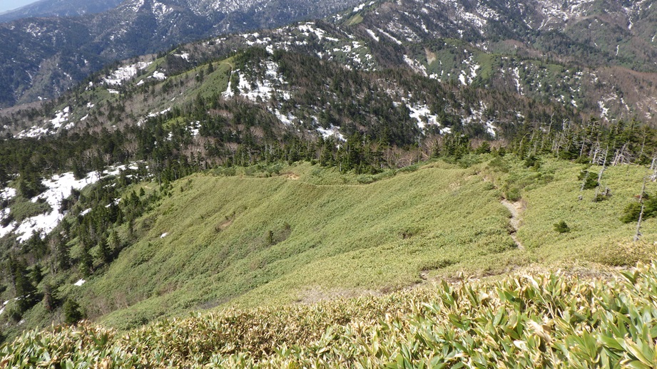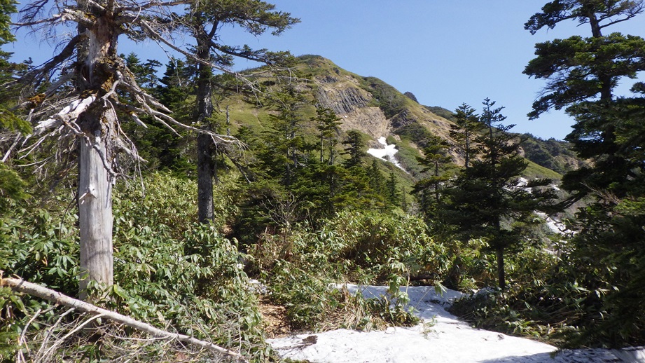 アライタ沢をわたってから1739mまで登って20mくらいゆるくっ下るところがある |