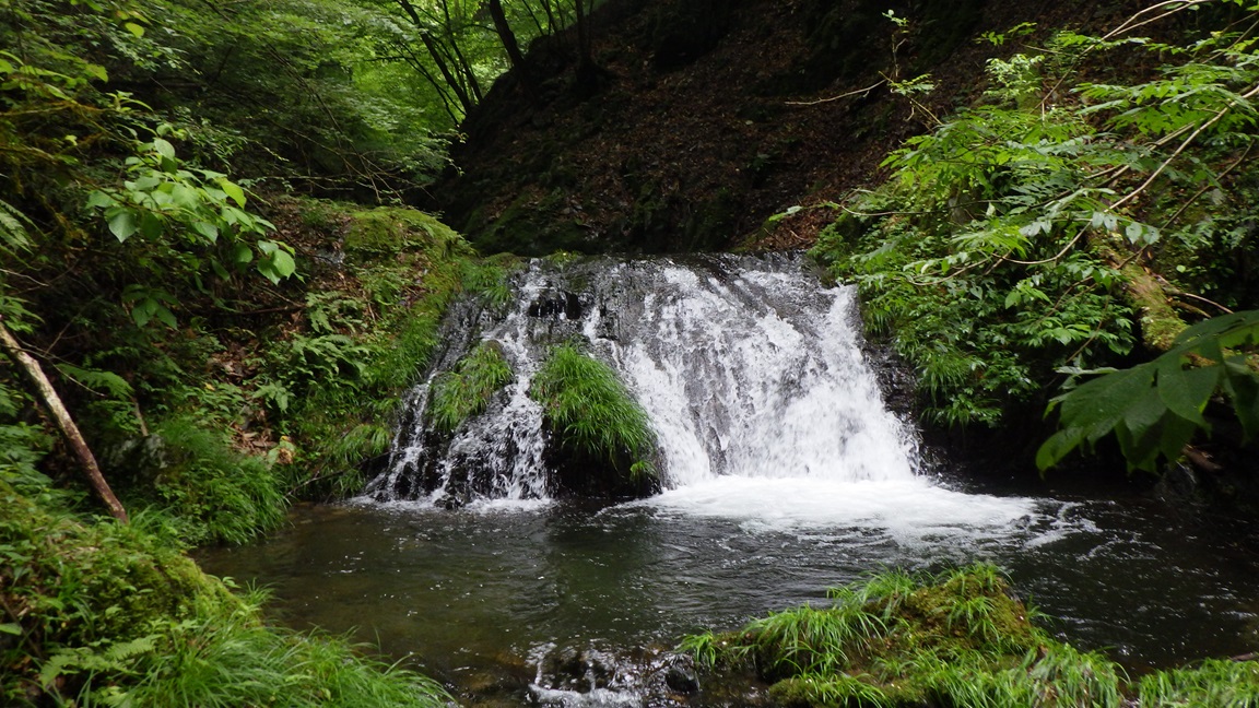 |  | 釜をもった小滝。 こういうところは問題なく登れる。 通過にてこずったところは写真がない。 釜が深かったり、小滝の中に足場を求めたりするところは 下降が難しいだろうと予想した。 下降するなら釜へ飛び込む感じかと考えた。 |