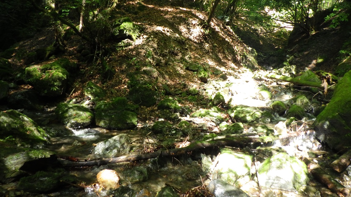 12時頃登山道に出た。 入渓して4時間20分ほどだ。 靴をアプローチシューズに替えた。 歩行中小さい羽虫(ブヨか?)がうるさかった。 何度も防虫スプレーをつかったが、しばらくまとわりついていた。 |