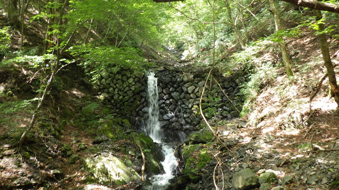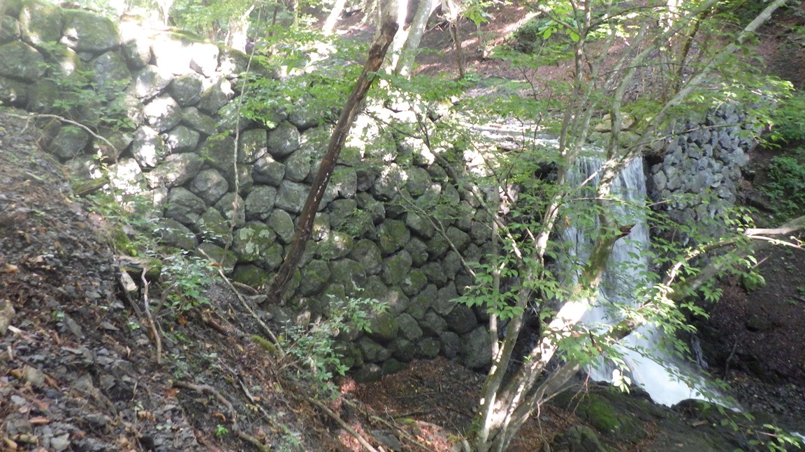 石積み堰堤が4箇所ある。 4個目の堰堤の手前に枝沢の入るところにも堰堤があるので これを数えると5個になる。 |