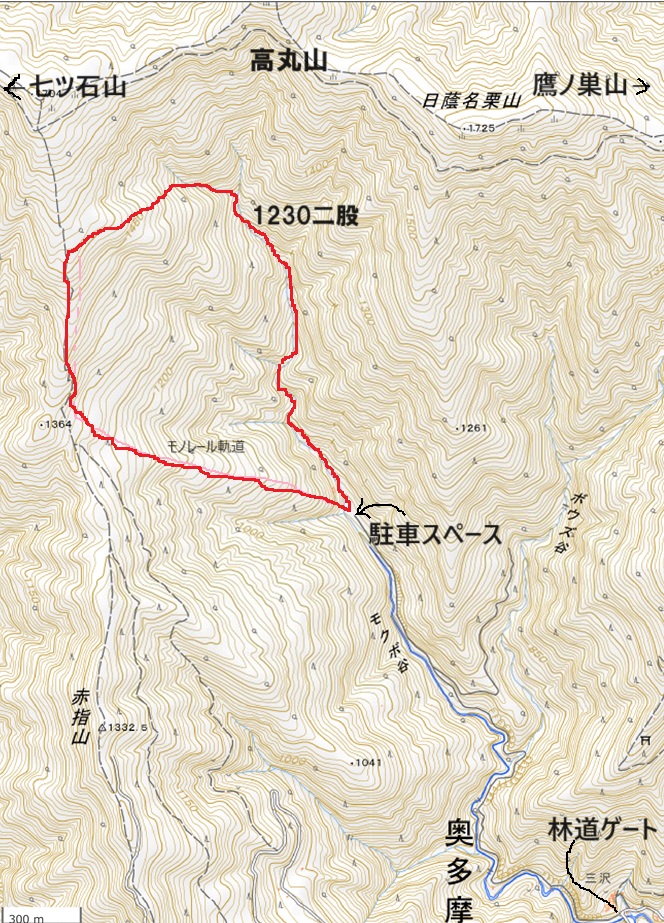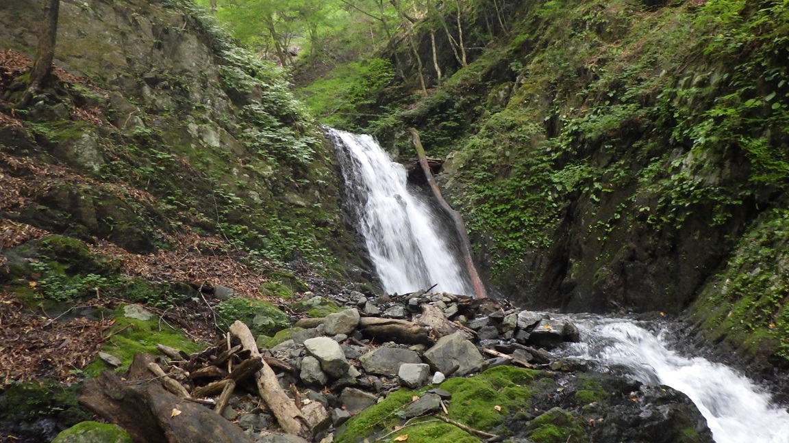 茂窪谷は奥多摩湖に流れこむ峰谷川の支流で上流には高丸山がある。 高丸山は七ツ石山と鷹ノ巣山の間にある。 茂窪谷はアプローチの林道が荒れており、 2023年ころから入口にゲートが設けられた。 ゲートに通行止めのような看板が掲げられているので行くのをやめていた。 ネット上のレポートの写真を色々見ていると ゲートの看板には「ゲート前駐車禁止」と「通行注意」と書かれていることが分かった。 通行禁止ではないようなので行ってみることにした。 茂窪谷の1230mの二股は右股へ行くと30mの大滝などがあり、 初心者には難しいと”東京起点沢登ルート120”には書いてあった。 私は高齢者なので、初心者同様に左股へ行くことにした。 大滝以外はすべて登れるということになっていたが、 二股の手前の滝も2〜3箇所は高巻いた。 |