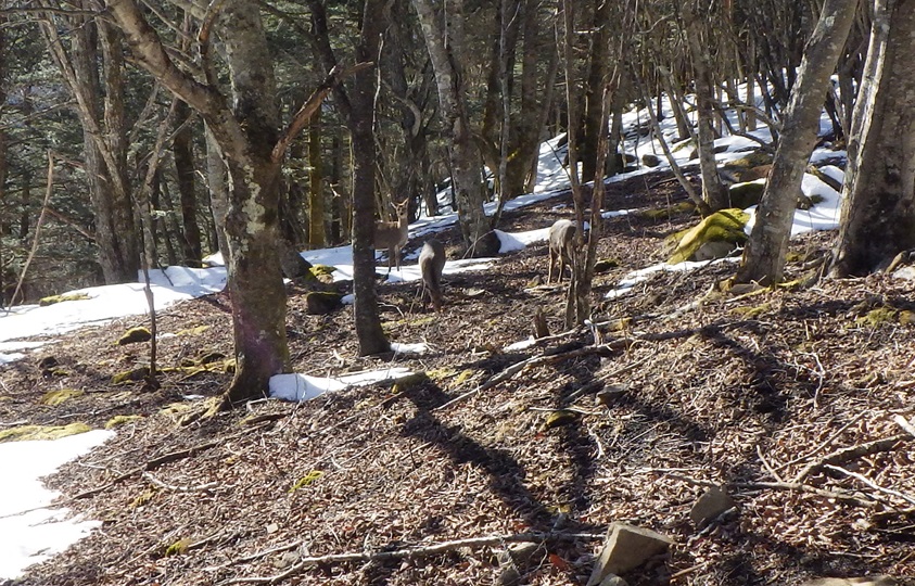 月見岩から降りるところで鹿達に会った。 登山口に降りたのは16:30頃、 車に戻ったのは17:00だった。 登り6時間弱、下り3時間半くらいだった。 今年古希だ。 |