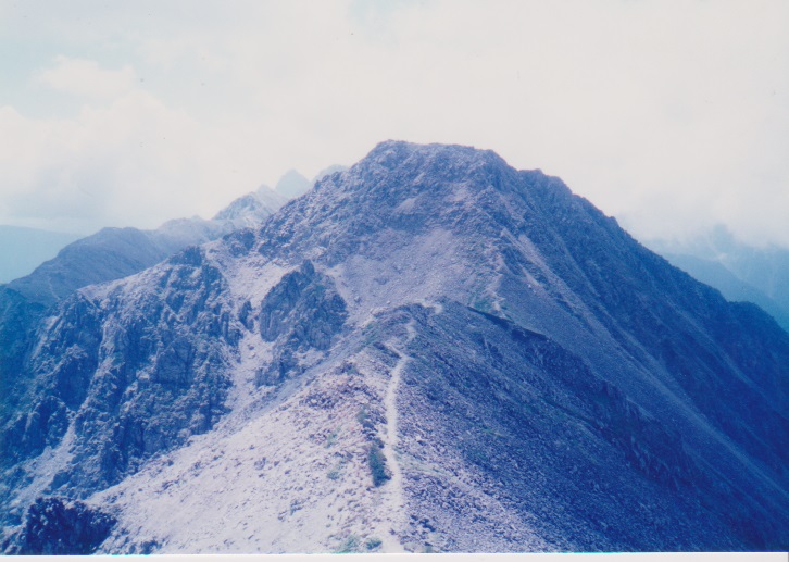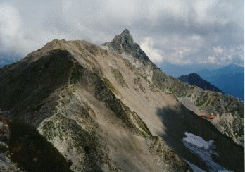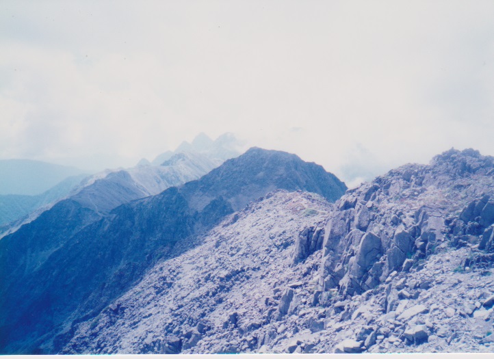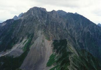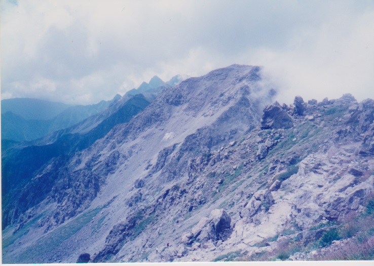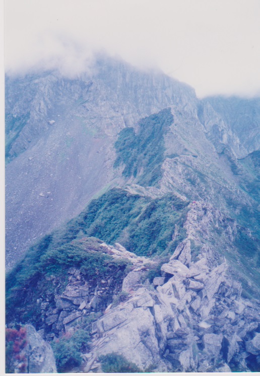 朝は曇り。大キレットの下りはなかなかの難路で緊張した。長谷川ピークを過ぎてからしばらくの間も難しいところだった。