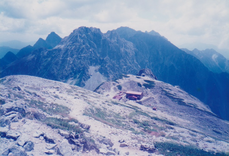 下りも15分。槍ヶ岳肩の小屋から白旗史郎さんがでてきたのにはびっくりした。ここから南岳まで一緒だった。