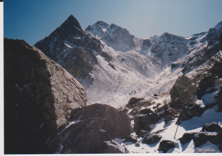 昨日より積雪が増えていて,この日の行動をどうしようか迷いましたが,白馬鑓の横から鑓温泉へ降りるルートをとることにしました.