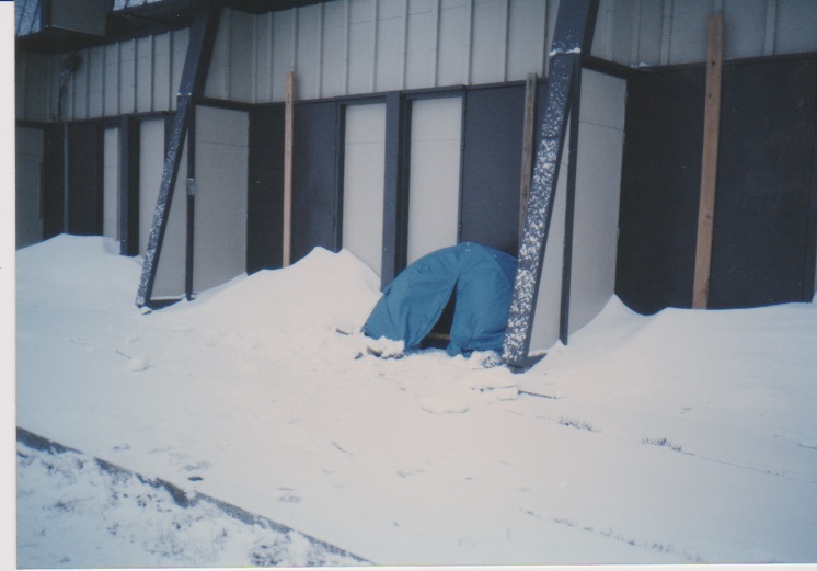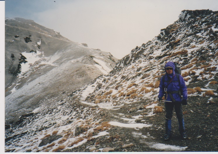 鑓温泉へ降りる途中でアイゼンをはずしました.この時期鑓温泉は無人で小屋が片づけられ露天風呂だけ残っています.