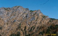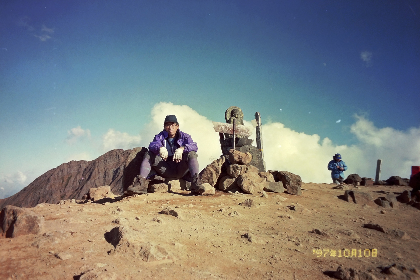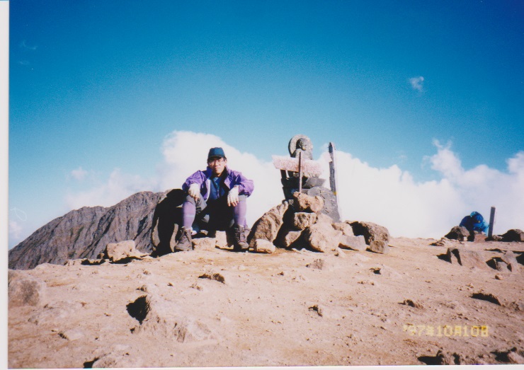 頂上間近で右へまわりまたやや左へもどって頂上にたどり着いた。頂上には一般ルートから登ってきたひとが数人居た。
