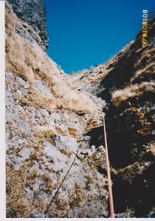 この取り付き部分が一番難しい。ロープがなかったら登れたかどうか自信がない。