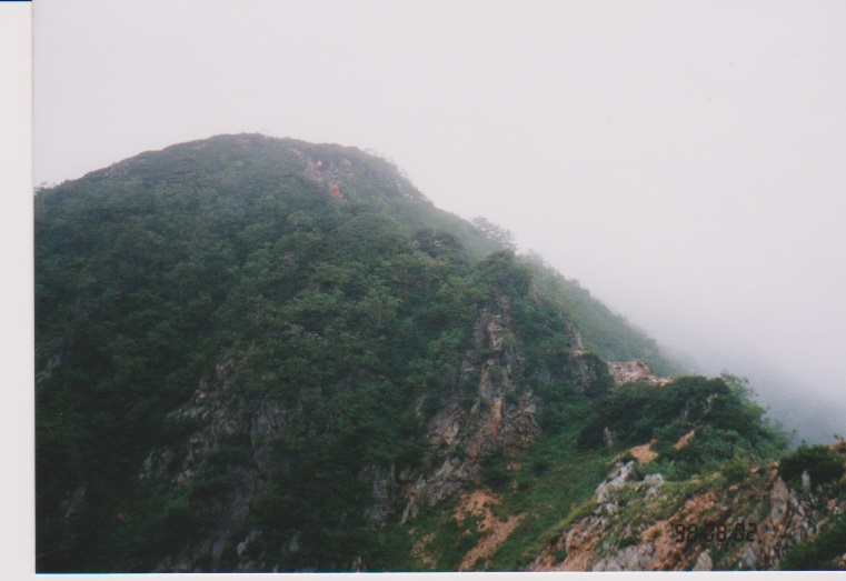 燕山荘まではここから約1時間の行程である。ずっと曇っていたが、ひととき雲が晴れ稜線が見渡せた。