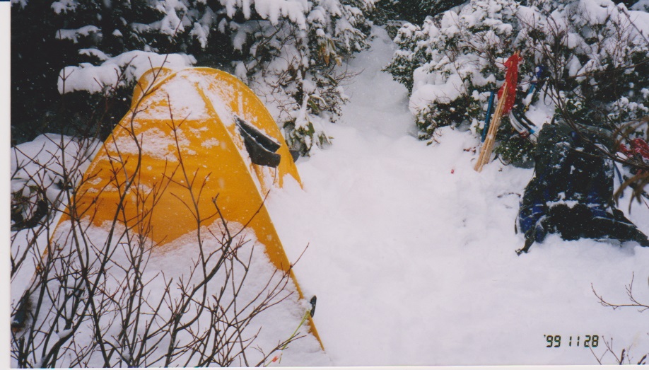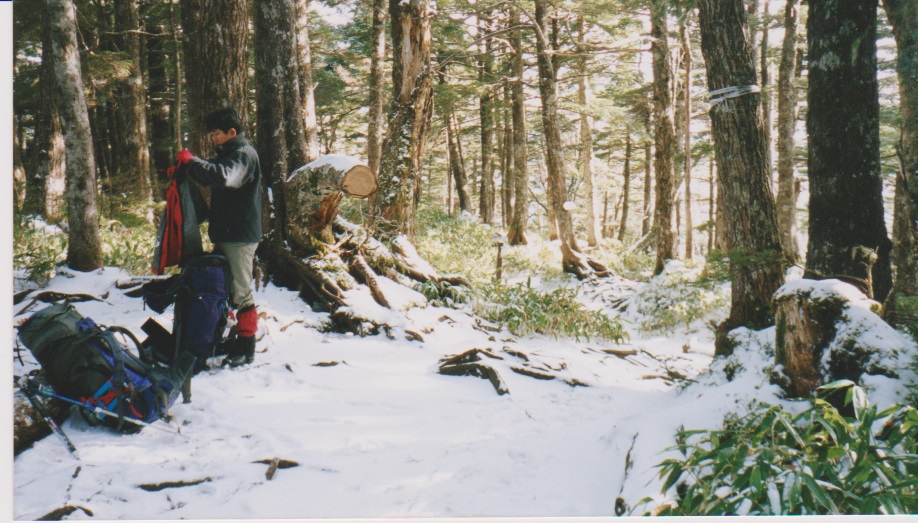 おもな装備:テント(ゴアライト2〜3人用、冬用外張り)、ピッケル、アイゼン、わかん、赤旗(7本)、