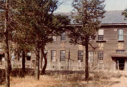 もう少し拡大した写真も載せておこう。「ココ」と指しているのが希望寮の建物。昭和49年の航空写真