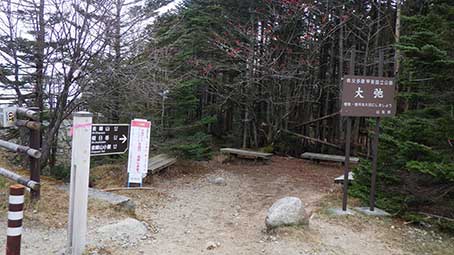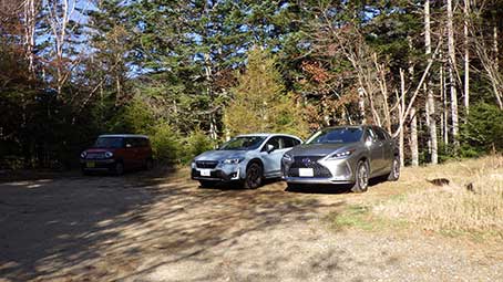 | 大弛峠に到着したのは14:15だった。車が1台しか停まっていなかった。 山梨側に降りる道は工事中で全面通行止めだった。 山にはまだまだ大勢人がいたので、みんな信州側から登ってきているのかと思った。 |