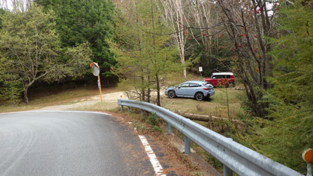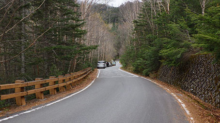 峠から500メートルくらい歩くと工事区間が終わり、 峠から1kmも離れた路肩に車がパラパラと10台くらい停まっていた。 皆、工事のために峠までは車で行けないことを知っていたのか。 良くめげずに、遠くに車をおいて、歩いて行ったものだと思った。 |