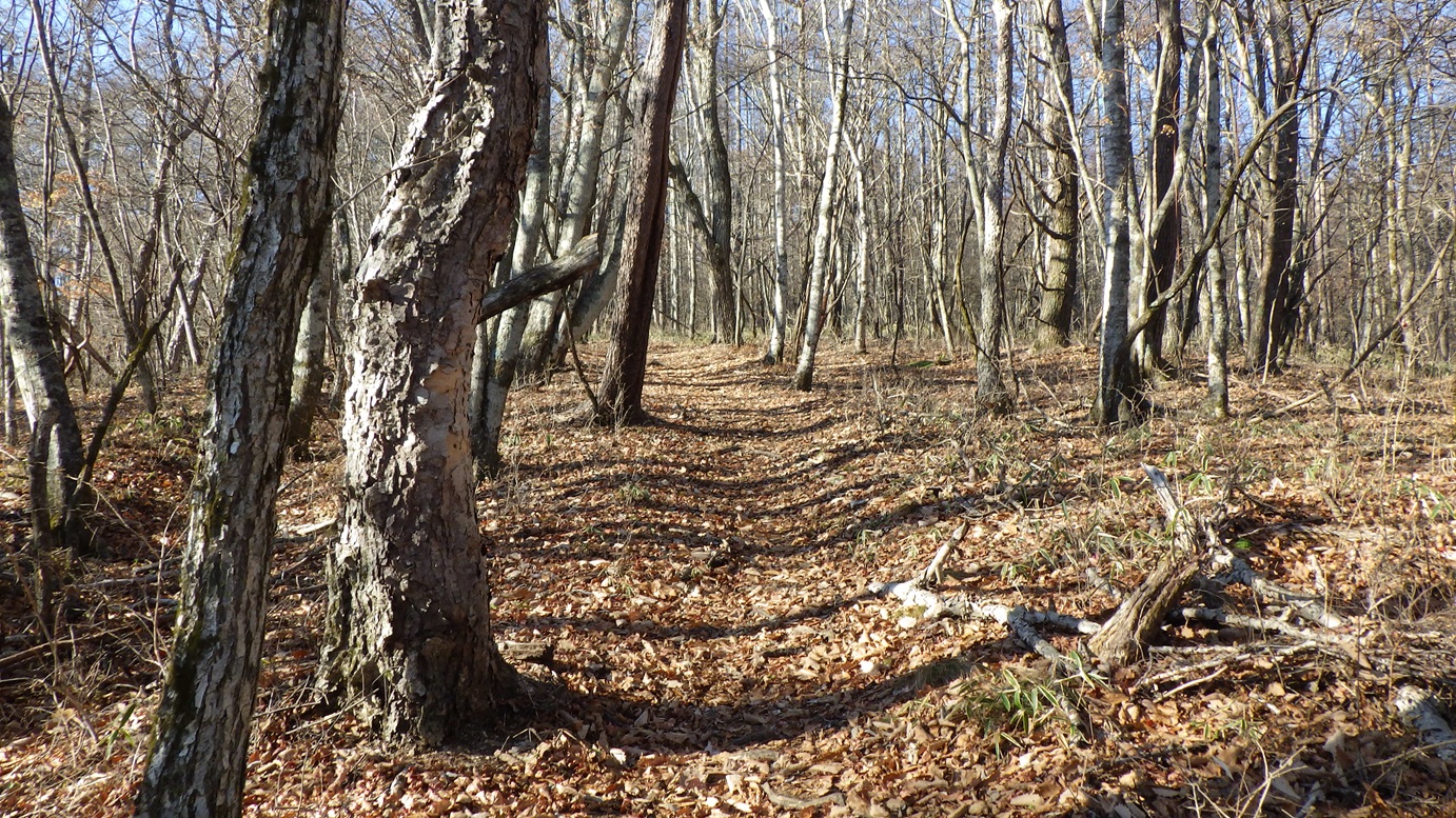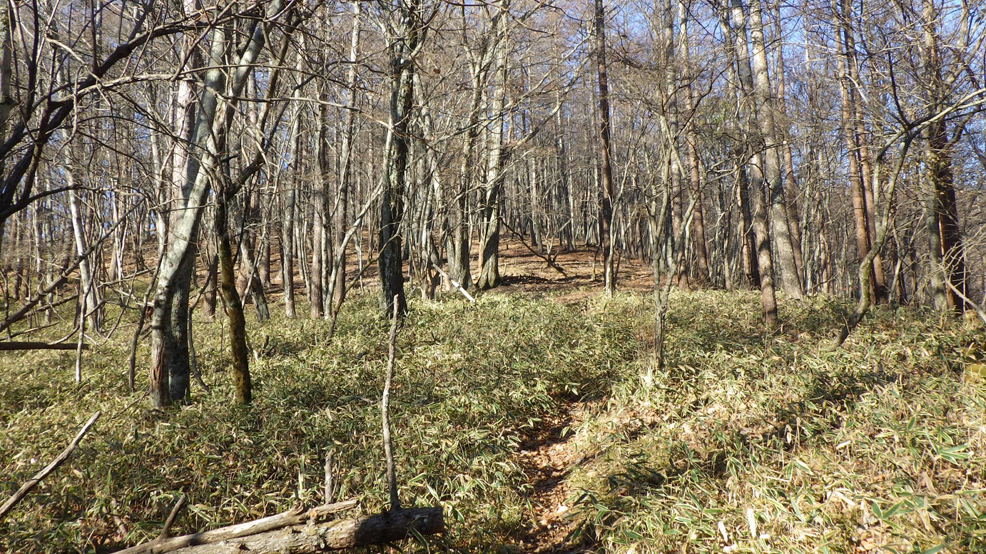はじめのうちは傾斜の緩い林の中の道を進む。 |