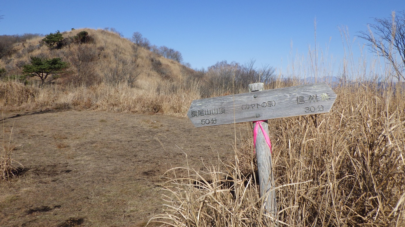 横尾山は信州峠に登山口があり、コースタイムは往路90分、復路70分とされている。