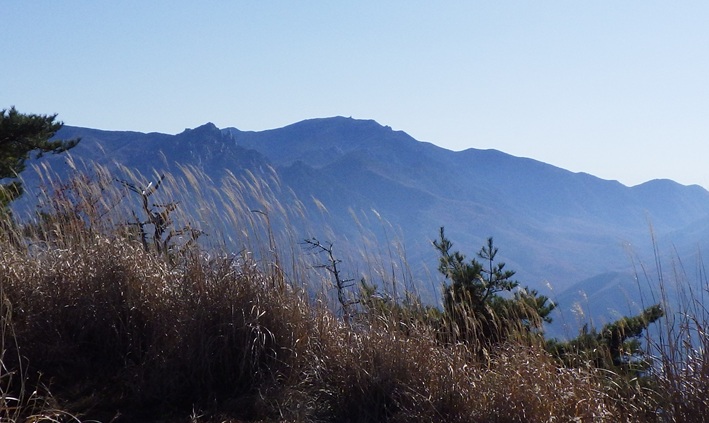 後ろ(東側)は瑞牆山と金峰山が見えた。 |