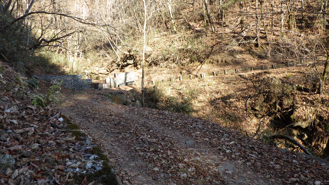 三ノ瀬までは平坦ではなく、上り下りがある。 中川橋からの下りが長かったので、 帰りは長い登りになるなと思った。 帰宅後に地形図上で作場平から三ノ瀬の登山口までの距離を 計測すると3.2kmであった。 |